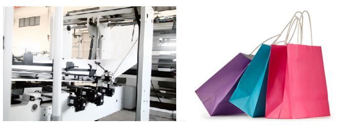 本机以单张纸、卷筒式头卡和纸绳为原料,一次性完成带手把的小型方底纸袋,是生产中手提纸袋的理想设备,特别适用于食品、服装等行业的购物袋生产。通过在一台机器上完成手把制作、手把黏贴、纸筒成型和袋底成型等步骤,该机器真正实现了全自动化 生产,能够有效地节省人工成本。得益于完善的工艺,本机能够生产出多种不同形式的高质量手提纸袋,解放小型方底手提袋制作者的双手,为客户带来更多的利润。